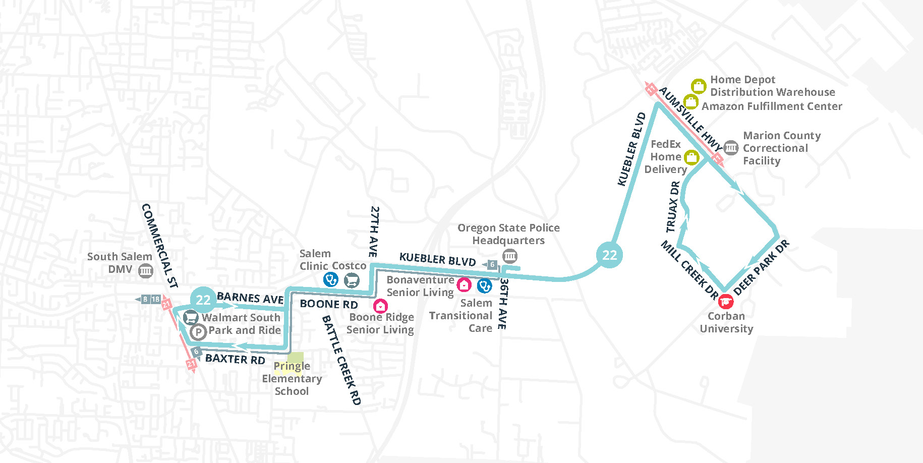 The need for a route along Kuebler Blvd that would link south Lancaster and south Commercial has been made very apparent to us. Not only has our service analysis indicated the need, but Cherriots Board Members, Cherriots staff, and the public have all expressed a desire for such a route. We are excited to implement this much needed link in south Salem!